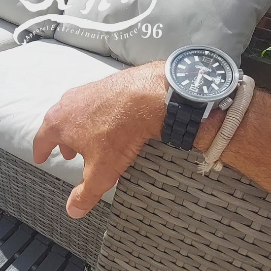 URCHIN Accessories & Watches. Black 'RETRO DIVER' 'Urchin London' Logo Watch. Rubber Strap. *To Order only.