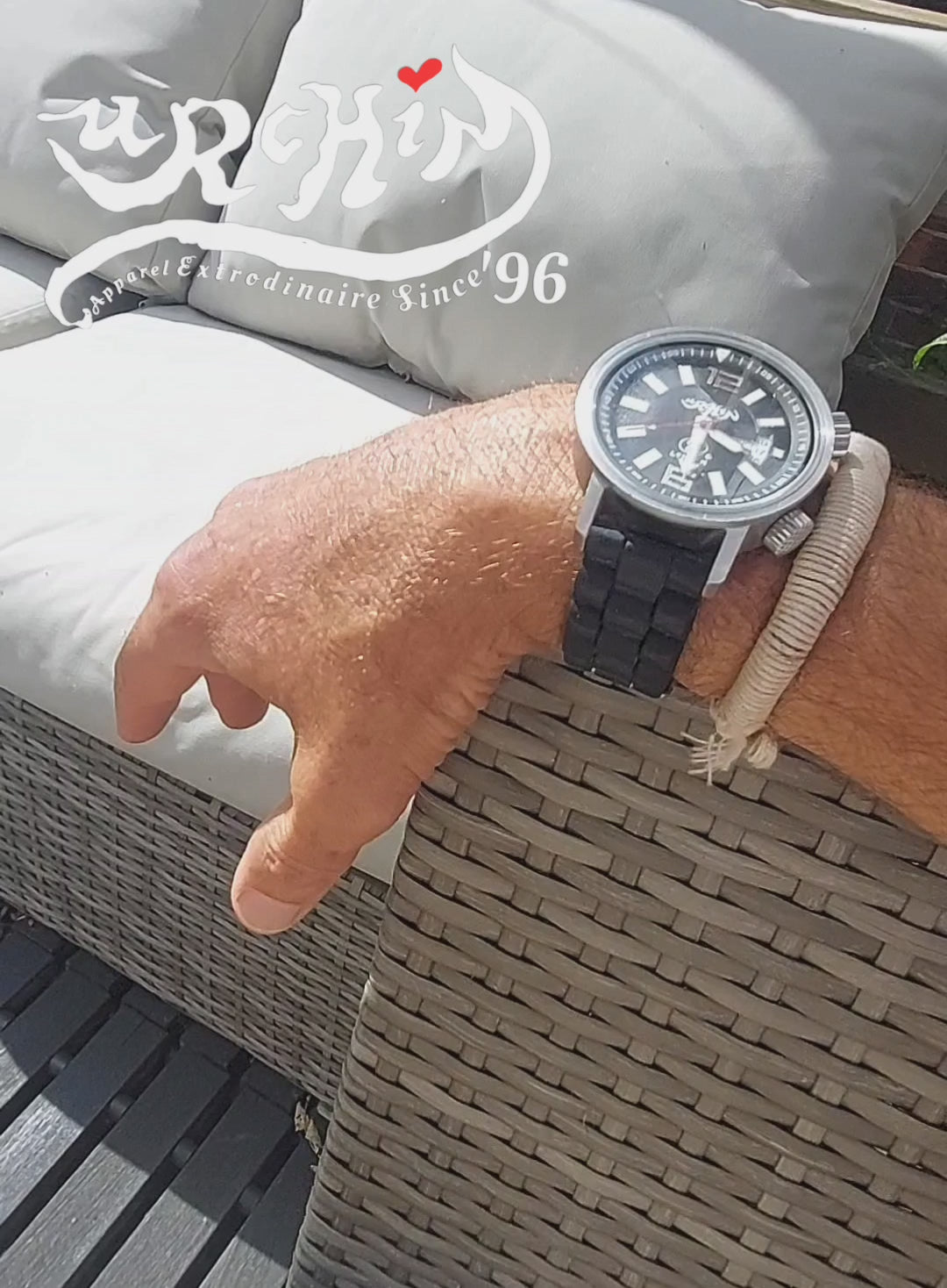 This iconic 'Retro Divers' Watch, comes with a Black Face, Luminous Dial, and my 'Urchin' & 'JSP London' Logos. Topped with a Steel Bezel. Stainless Steel Body and chunky tough Retro Rubber Strap, Rubber Collars, and tough Steel Pin Buckle. No plastic parts!