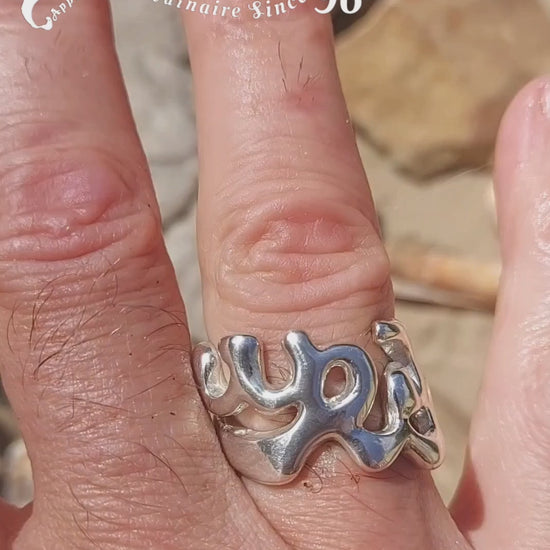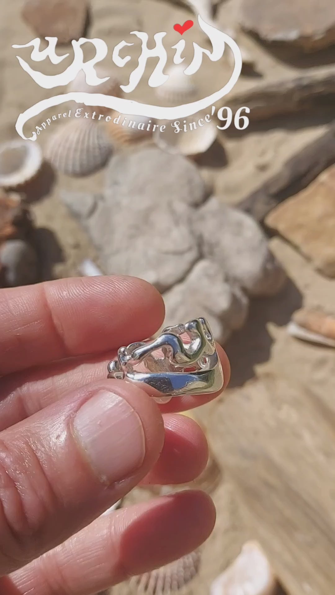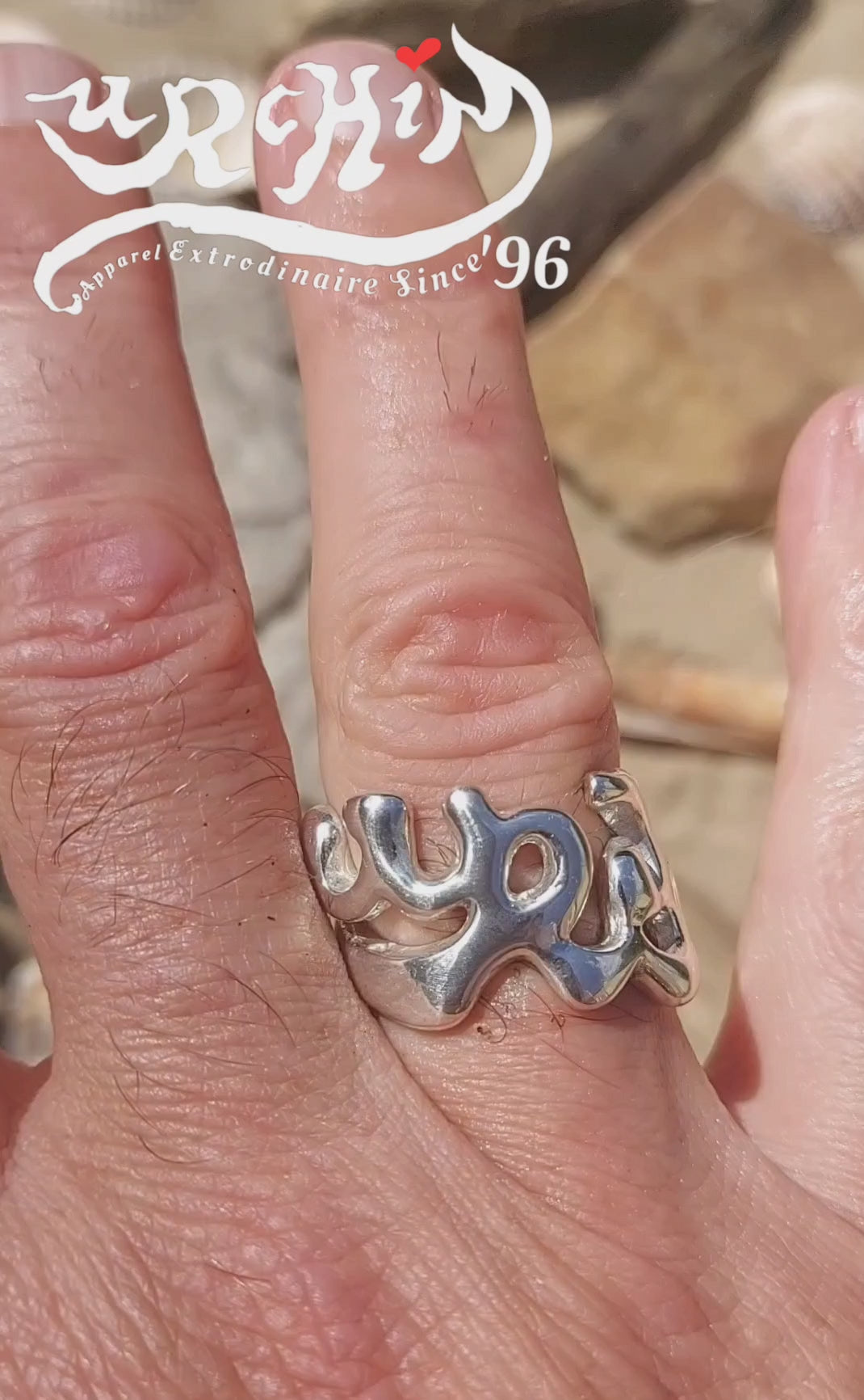 This is my 'URCHIN WAVE' logo ring, I first designed and made in the mid 1990s, for my Surf, Ski, Skate, and Street collection. With the iconic URCHIN logo carved into a unique cylindrical 'rolling wave' design.