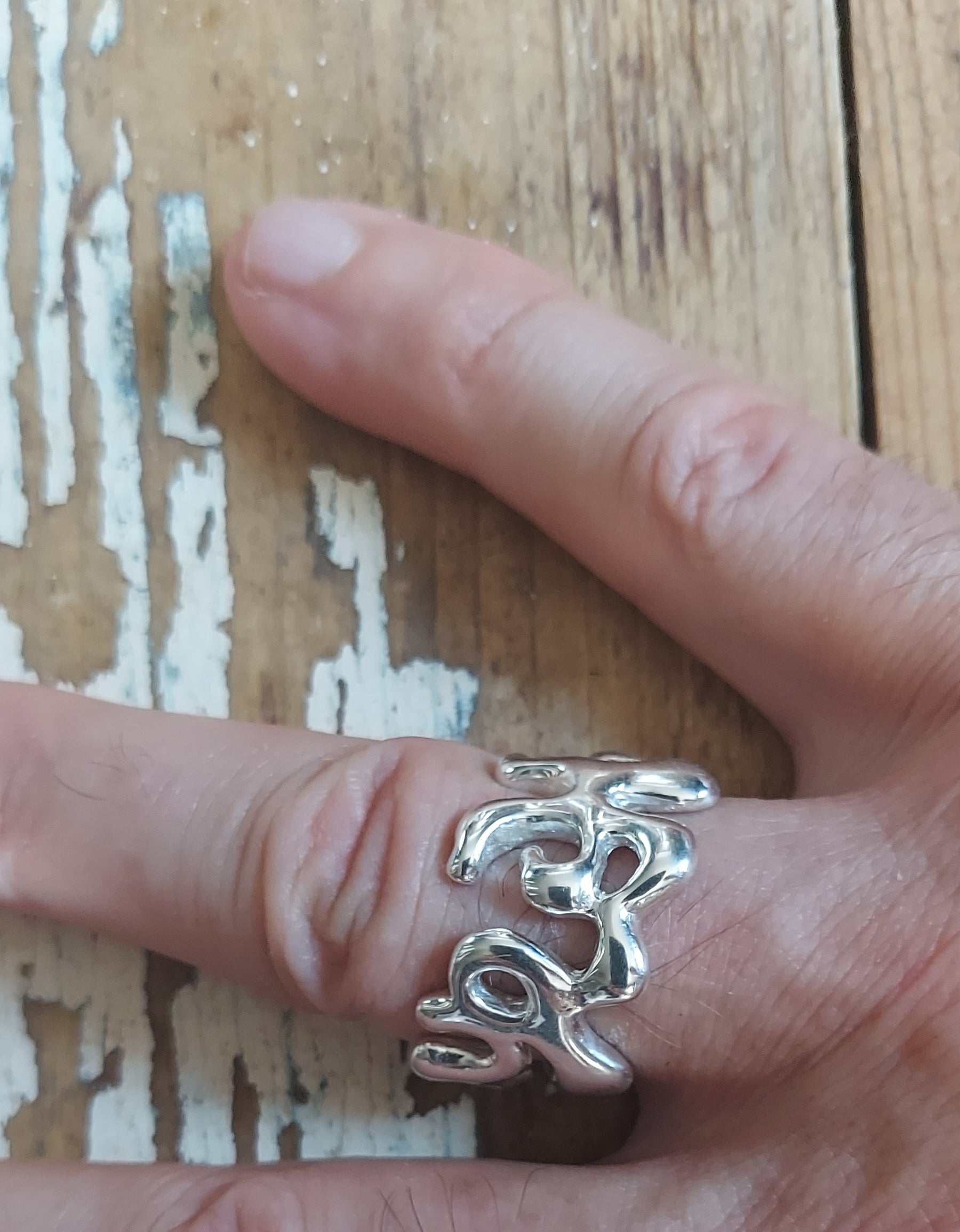 Picture yourself wearing this ring. This isn't just Jewellery, this is raw nature, tamed. The power and roll of a wave, the flow of movement . The exhilaration. The first run of the day, on new crisp snow. The curve of the track youll leave. The Skate bowl and the perfect trick after months of practice. Airbourne.