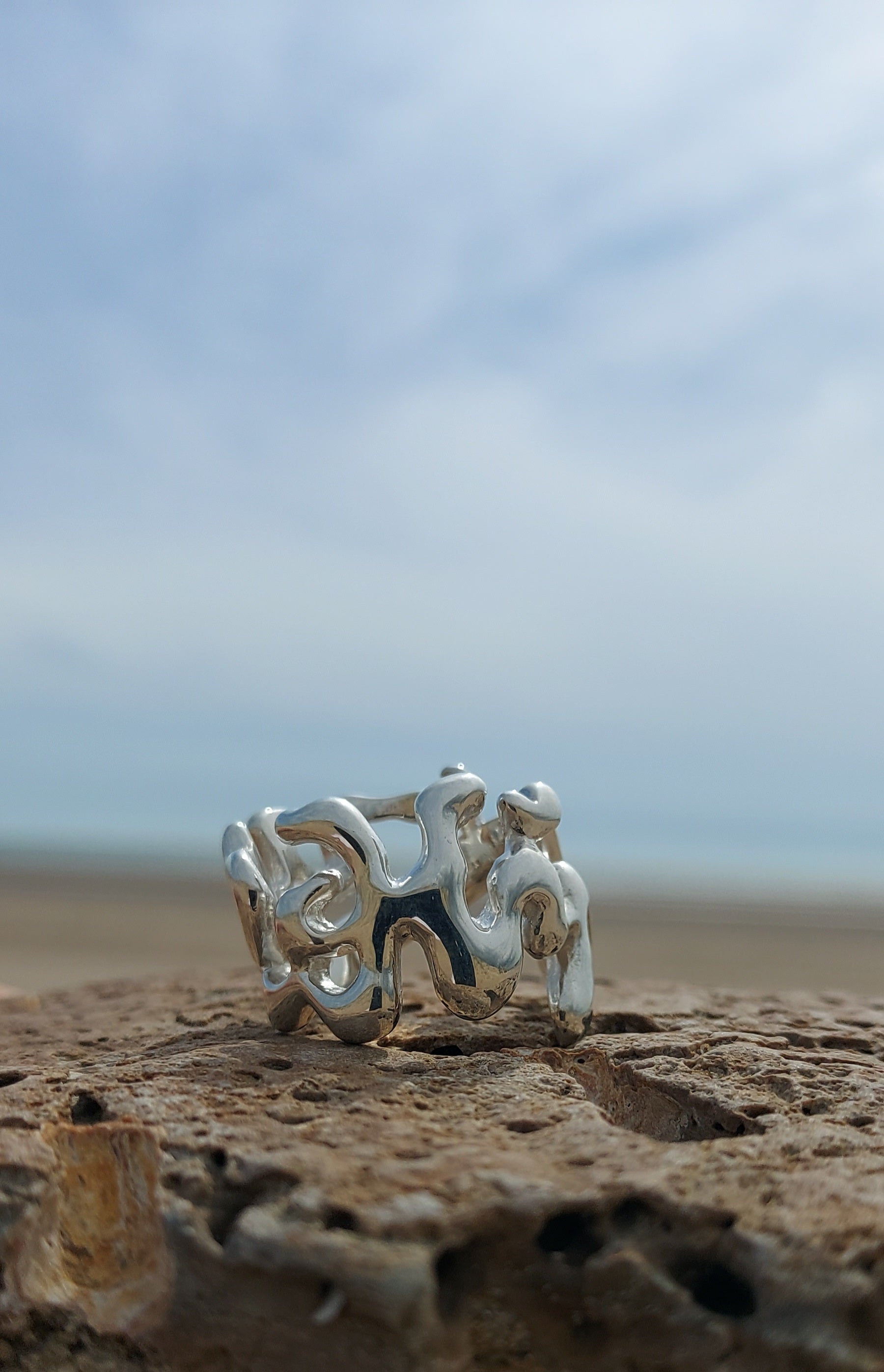 Picture yourself wearing this ring. This isn't just Jewellery, this is raw nature, tamed. The power and roll of a wave, the flow of movement . The exhilaration. The first run of the day, on new crisp snow. The curve of the track youll leave. The Skate bowl and the perfect trick after months of practice. Airbourne.