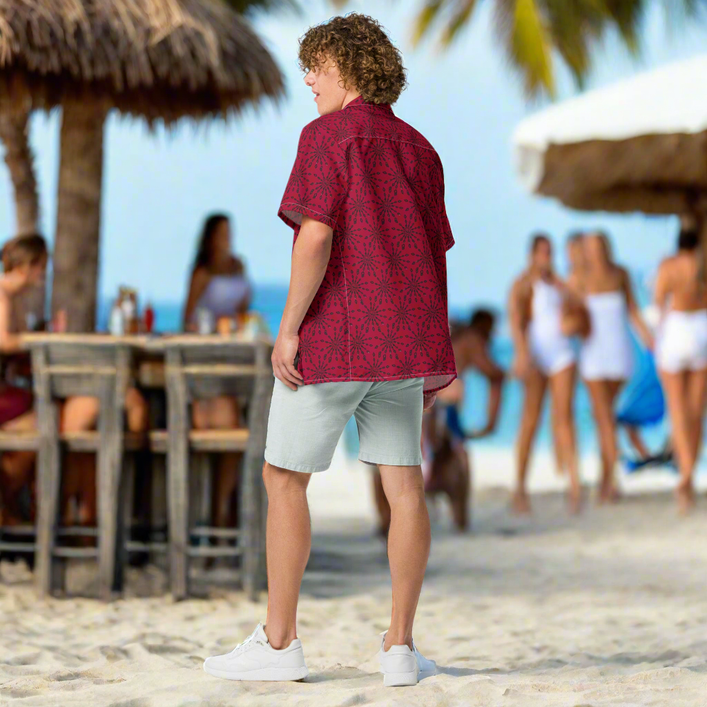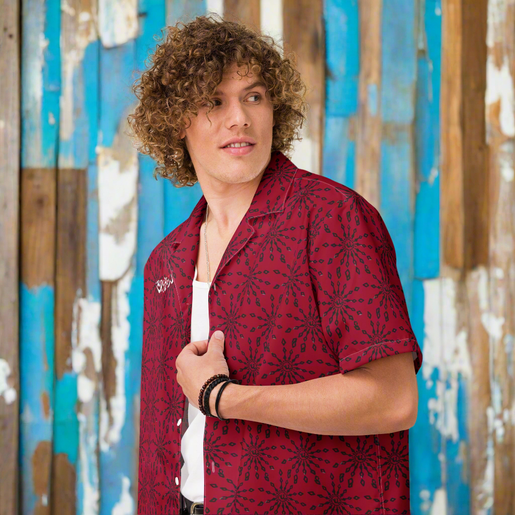 URCHIN 'U FIREWORK'. BLACK/GRAPE Unisex button shirt. Multiple Sizes.