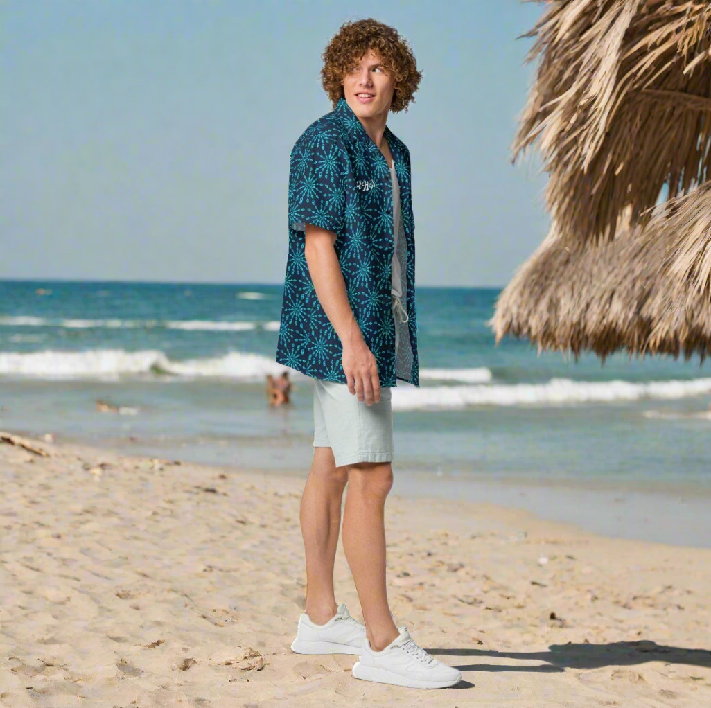 URCHIN 'U FIREWORK'. BLUE/BLUEBERRY Unisex button shirt. Multiple Sizes.
