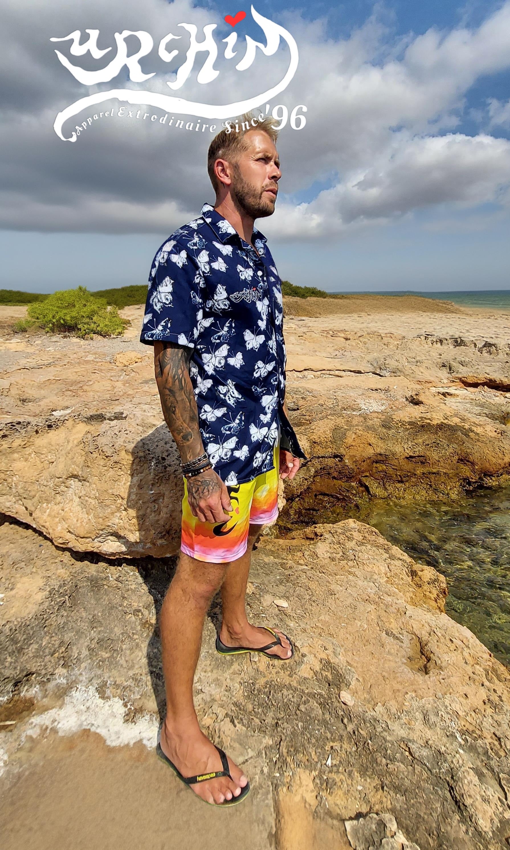 My 'U BUTTERFLY' Range, is available in various colours, and colour combinations. Its a retro look print, harking back to the 1960/70s Surf Designs and Prints. All my designs are inspired by the vintage shirts I wore Surfing in Cornwall, and Clubbing in London, Greece, and Ibiza, in the 90s. Perfect for Festivals, beach parties, off piste fun, skateboarding, clubbing or just hanging out. Long summer nights, hazy summer days. Memories with Friends to last a lifetime.