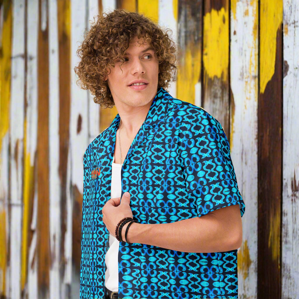 URCHIN 'BLUE SEA SHELLS' 'Blueberry'(Dark Blue). Unisex button shirt. Multiple Sizes.